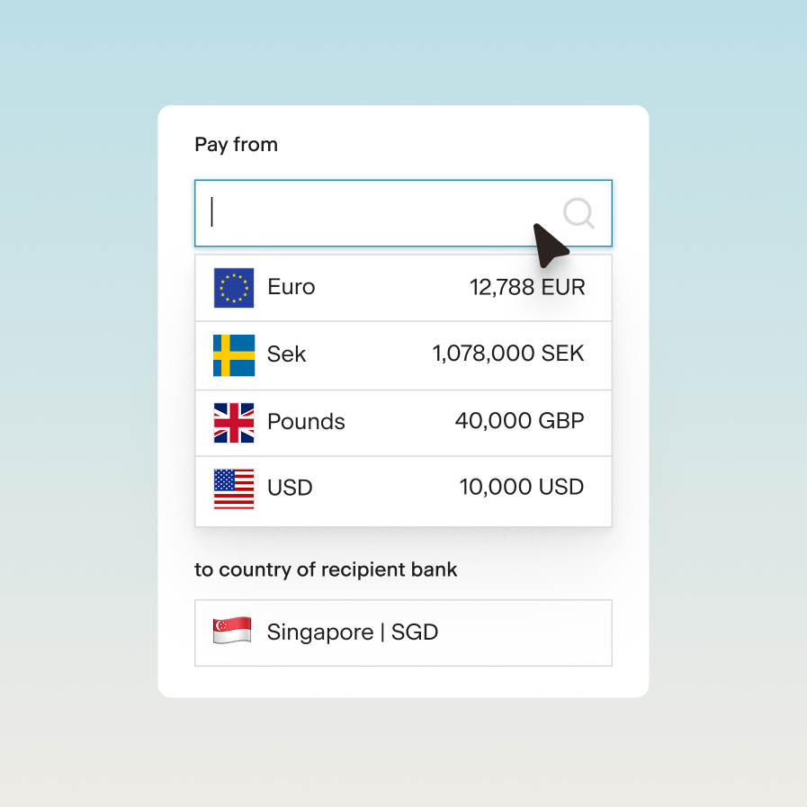 Multi-currency accounts for ambitious finance teams. Transact in SEK, GBP, EUR, USD, and NOK without the friction of traditional business banking.