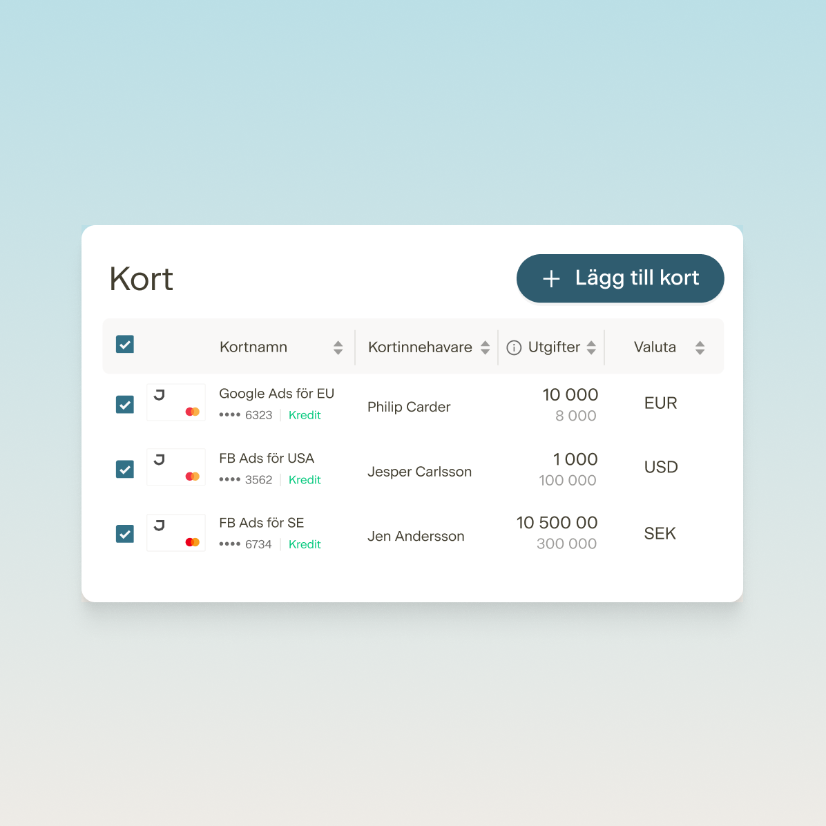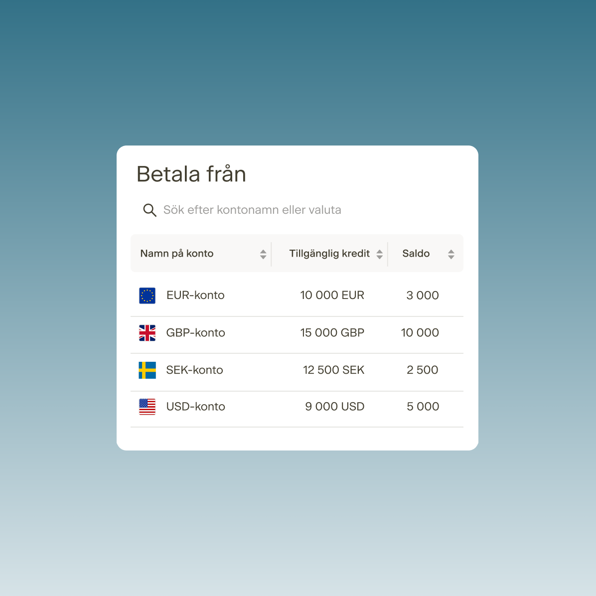 Valutakonton och företagskort skapade för global verksamhet. Få transparenta växlingsavgifter, lokala betalningar och AI-driven avstämning i en integrerad plattform.