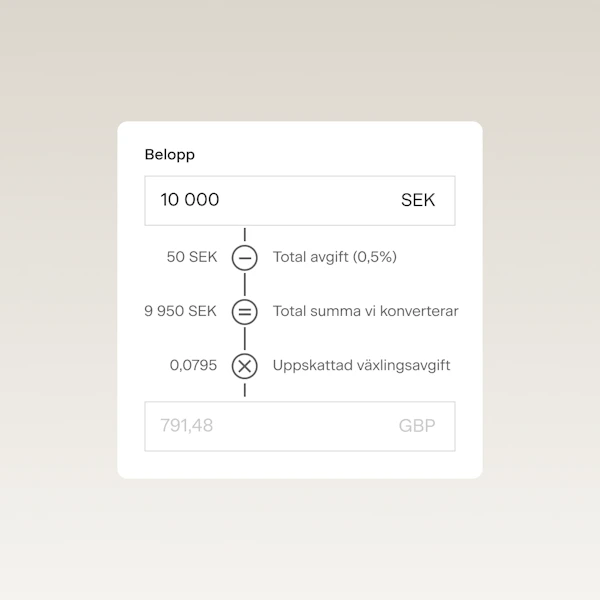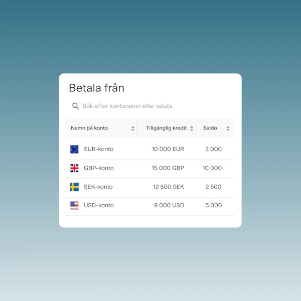 Företagskonton som är skapade för att optimera både dina kostnader och din tid. Du kan betala säkert och snabbt med Bankgiro, SEPA eller SWIFT-överföringar. Spara på varje överföring: Kostnadsfria lokala betalningar och låga växlingsavgifter när du växlar valuta. Bokför varje transaktion i realtid med vår Fortnox-integration.