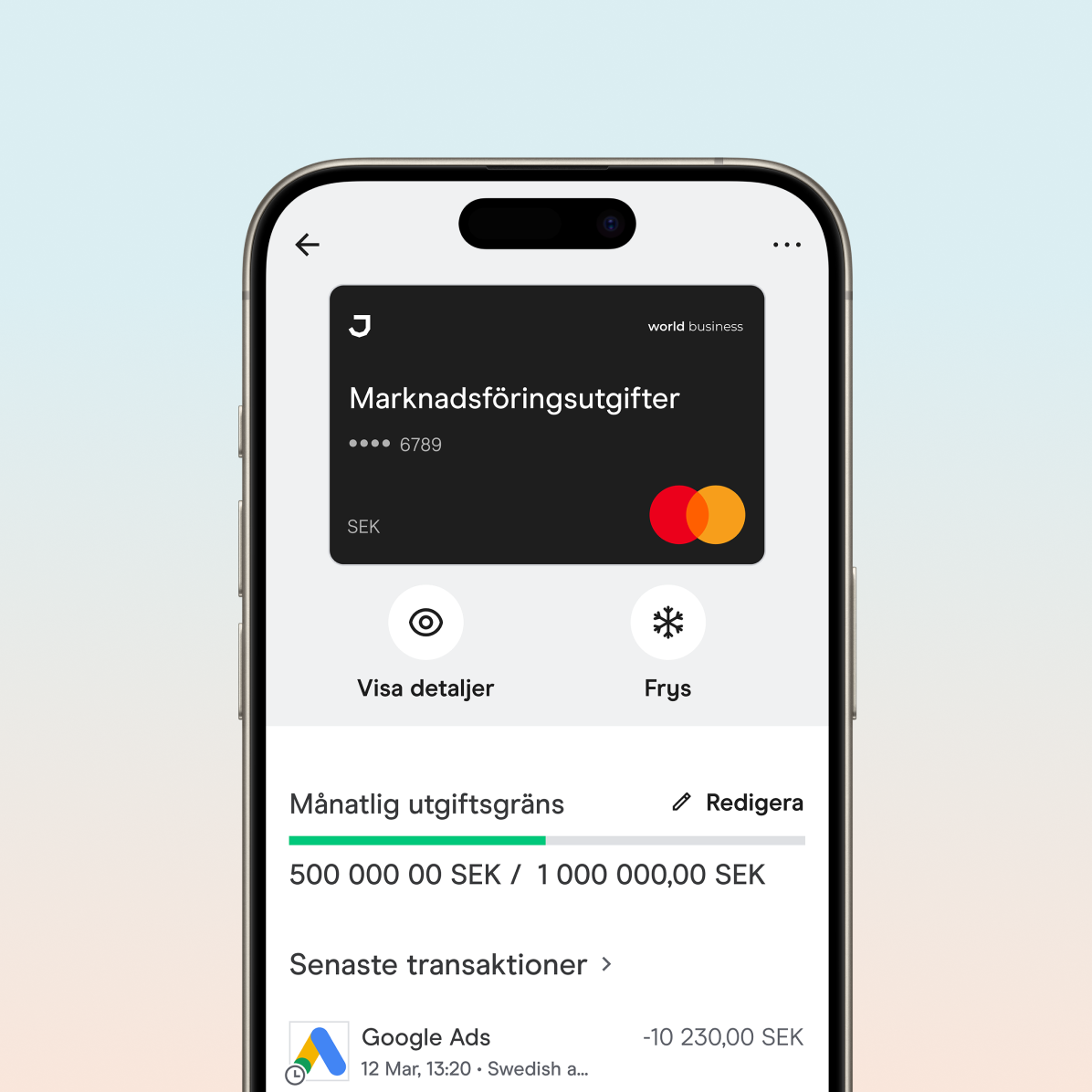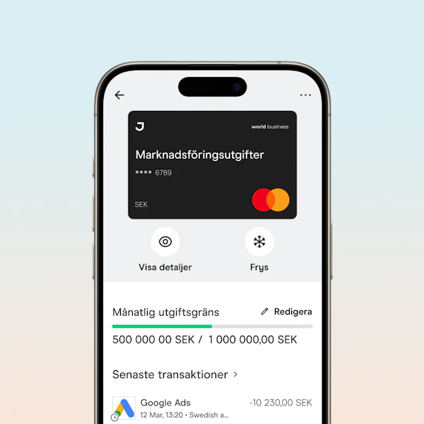 Förvandla driftskostnader till en ny intäktsström med Junis virtuella kort och upp till 1 % obegränsad cashback. Få full kontroll över varje krona, cent och dollar med anpassade regler och köpgränser för varje kort. Slipp jaga kvitton och låt Juni AI göra jobbet åt dig - vår utgiftsrapportering ser till att utgiften är rätt konterad från start.