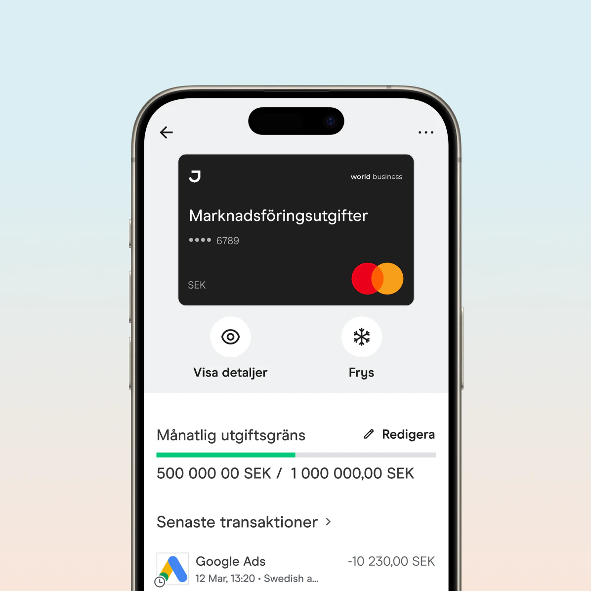 Gör betalningar, justera köpgränser och godkänn leverantörsfakturor direkt i mobilappen. Få kontroll över varje transaktion och se spendering i realtid.