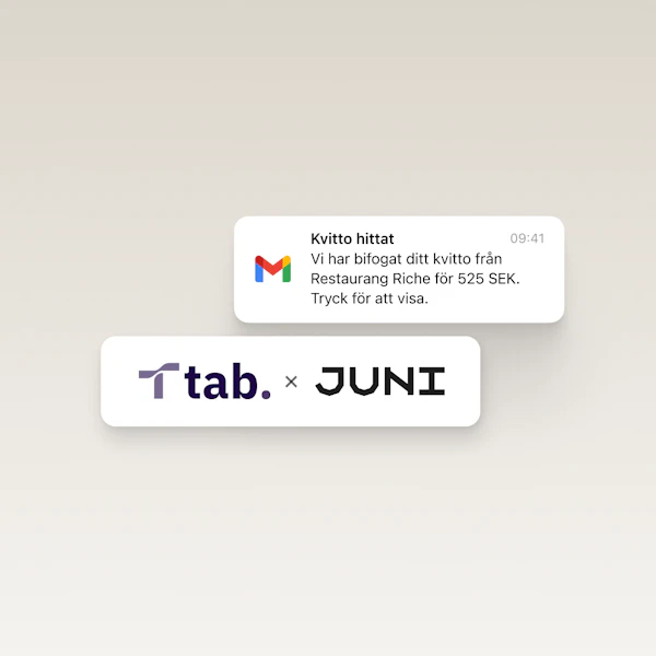 Förenklad kvittohantering via mobilen. Juni AI matchar underlag mot rätt transaktion och synkroniserar sömlöst med Fortnox.
